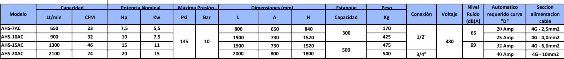 COMPRESOR DE TORNILLO 15 HP AHS-15C CON ESTANQUE, SECADOR Y FILTROS ( SOLO A PEDIDOS)